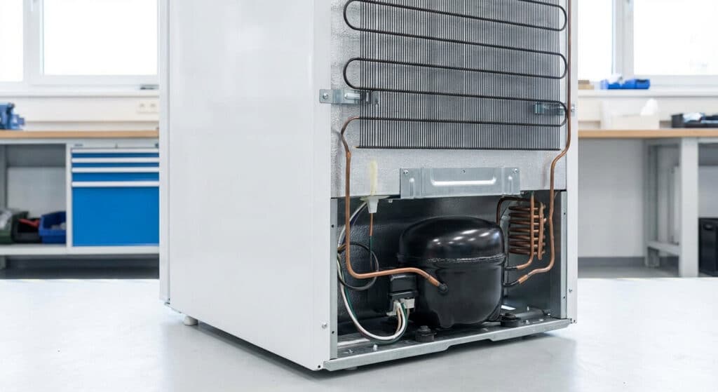 Puisque vous avez pris la peine de l’éloigner du mur, profitez de cette occasion en or pour effectuer un entretien souvent négligé : le nettoyage du condenseur. À l’arrière du réfrigérateur se trouve une grande grille métallique noire (sur les modèles classiques) ou des fentes d’aération au niveau du bloc moteur.