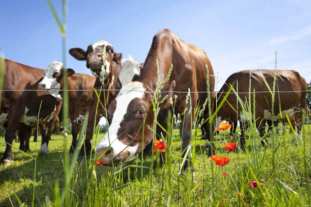 En principe, oui. Un pré est fait pour être pâturé jusqu’à ses limites. Si le champ appartient à l’agriculteur (ou s’il le loue), il a le droit d’y mettre ses bêtes. Il n’existe pas de « retrait » obligatoire de 2 mètres comme pour les arbres.